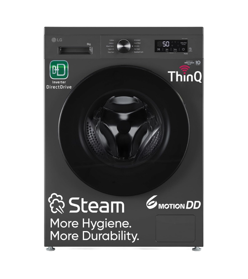 Premium front-load wash with in-built heater, AI Active Water+ and anti-tangle steam cycles—designed for efficient, hygienic laundry.